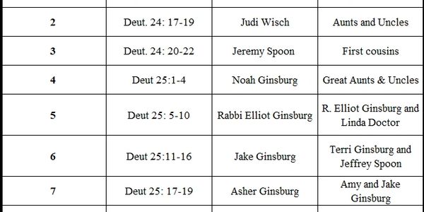 The Torah is the most sacred text in Judaism, containing the Five Books of Moses. Reading from the Torah is central to Jewish life and worship. At his Bar Mitzvah, Asher chants from Parashat Ki Teitzei (Deuteronomy 24–25).